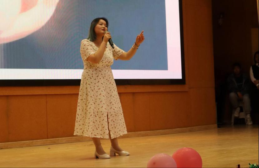 图为2107的王学瑶带来的歌曲《梨花又开放》。