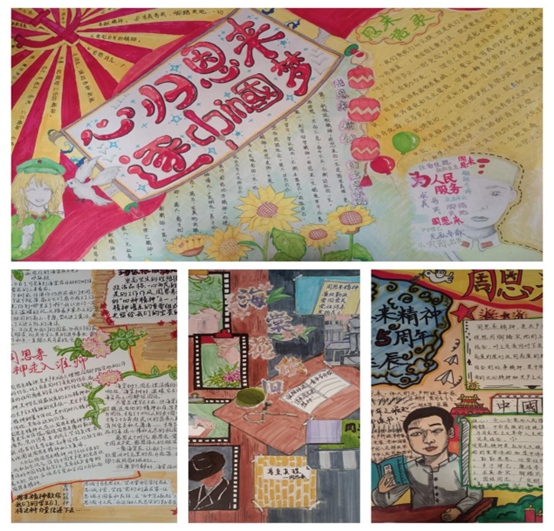第二部分是“书画表意”,该部分要求同学们制作关于周恩来总理的绘画或者手抄报,要求内容紧紧围绕活动主题。参赛同学将周恩来精神与淮师精神相结合,绘出淮师学子的赤子之心。