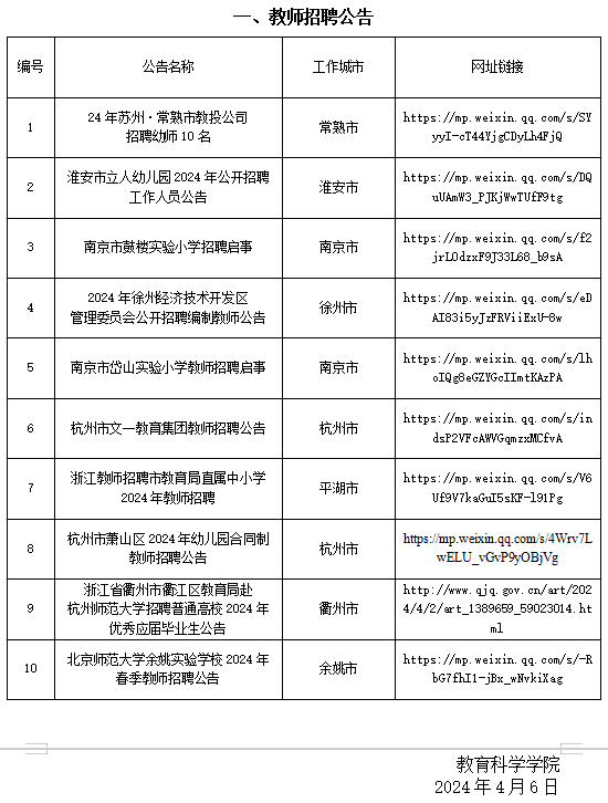 教育科学学院2023-2024学年第二学期第6周招聘信息