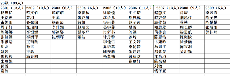 经本人申请,党支部教育、培养和考察,学院党委研究同意,对2024年上半年拟吸收为积极分子的人选进行公示。对公示人选有不同意见者,请于2024年3月23日前,当面或署名书信、电话向学院党委反映。公示名单如下: