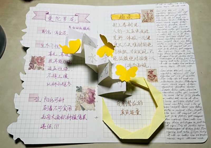 2108的杨雅涵同学用立体手账的方式展现了曼陀罗花之美