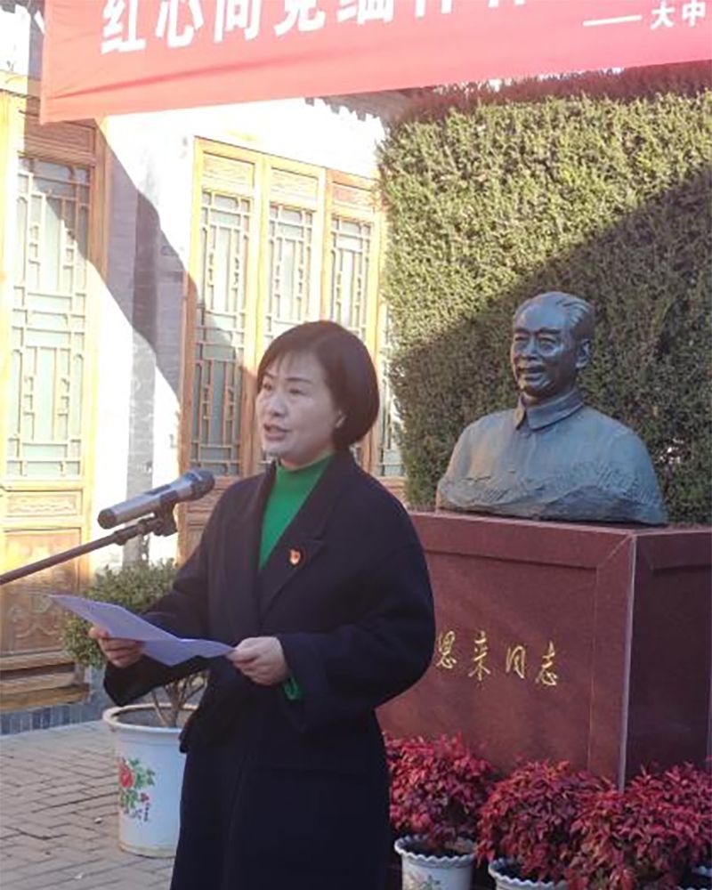 “同读一首诗”,由主持人管爱花部长领诵,全体人员共同朗诵《大江歌罢掉头东》,以诗为媒、以诵传情,传递了伟人精神与家国情怀。