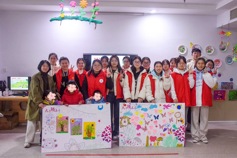 志愿者们来到淮安市博爱康复中心,和小朋友们进行互动,共同完成手工作品。他们和小朋友们共同装饰心愿板,将写满心愿的便利贴贴在白板上,并在白板上绘画来进行装饰,志愿者们鼓励孩子们自由探索和尝试,通过艺术的力量,建立更为丰富和多元的世界观。接着,他们陪小朋友们一同“变废为宝”,将泡沫条装饰城杨柳画,让小朋友们在动手的同时也学习到环保知识。随后,志愿者们在给小朋友们讲故事的同时,手把手教他们认识故事中的汉字,一次短暂的陪伴不仅为小朋友们带来温暖与关怀,也增进了志愿者与他们之间的交流。