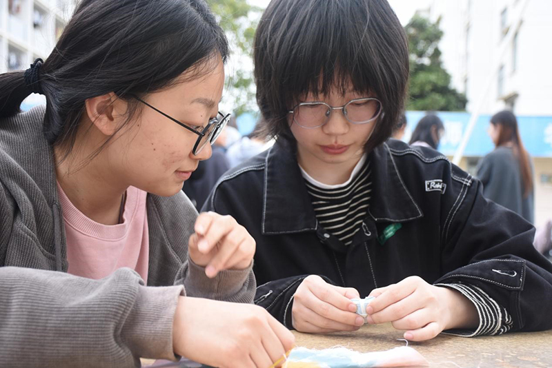 教科网4月16日电(记者 嵇文杰)当染色遇上融合,当传承遇上温暖,就勾勒出了独一无二的美妙与创意,正如我们的青春,充满未知,布满惊喜。扎染作为一项珍贵的非物质文化遗产,承载着丰富的历史和文化内涵。为更好地传承非遗物质文化遗产,心韵坊手工协会于4月13日在校内开展了此次扎染活动。会长高海畅、团支书欧阳馨秋等人负责本次活动,参与人员众多,最终作品精彩纷呈,取得圆满收官。
