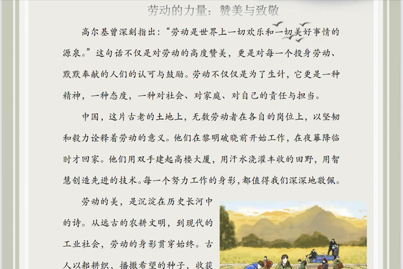参加的同学们以“劳动节”相关内容为活动主题,进行征文创作,同学们将发挥想象与创造性,制作自己心中对于清明节的理解。