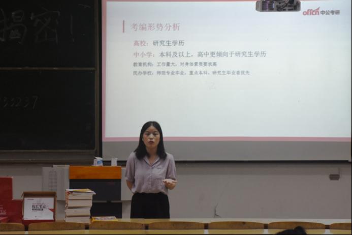 教科网9月25日电(记者 王志文 肖妍梅 陈逸行)为帮助royal皇家88平台教育科学学院学生们对研究生考试有更加全面的认识,明确考研目标,掌握相关考研技巧,增强考研斗志,精准、有效的帮助学生解决考研难题。 9月22日与9月24日晚,教科院于崇文阶梯教室101开展考研指导公益讲座,讲座特邀中公教育事业部王老师作为主讲人,教科院全体大三学生参加讲座。