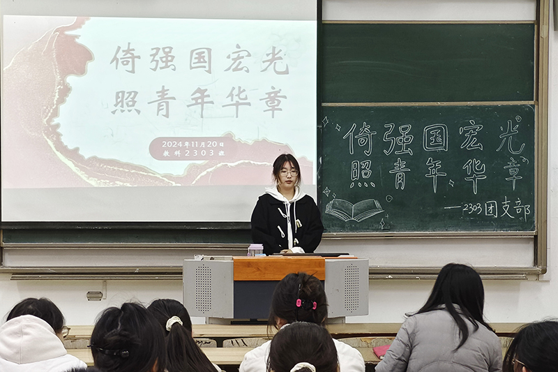 教科网11月22日电(记者 杨雨辰)11月20日,教育科学学院2303班成功举行了“倚强国宏光,照青年华章”主题团日活动,活动由2303班团支书邹冰姿主持,党委学生工作部副部长章雪老师、教科院辅导员张菁菁老师,教科2303班主任周燕明老师、2303班全体同学参加活动。