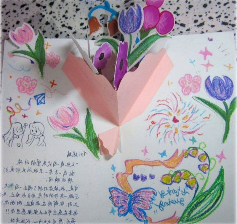 活动采用线上参与的方式,主要内容为“感恩”拥抱卡的制作。同学们以自身感悟设计创作出精心装饰的心仪作品,在写下的自我期待与感恩留言的同时,充分发挥动手能力和想象力,表达出自己内心的感谢。在活动进行当中,大家积极参与,在平台上展现自我风采,倡导感恩回馈,鼓励大家以实际行动表达感谢,推广出感恩背后的文化价值,完成出色的作品。在活动结束后,学院对这些优秀精美的作品进行了评奖,同学们将自己的作品送到那个深爱的人手里,留下感恩的足迹,让更多人感受到温暖的魔力。