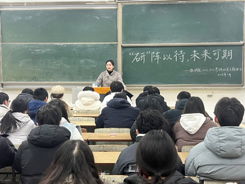 教科网1月7日电(记者 吴宇菲)为进一步推动班级优良学风的建设,充分调动学生的考研积极性,帮助学生们了解考研形势、明确考研目标、增强考研信心,以优良的学风助力学院高质量人才培养, 1月6日晚上,教科2205、2305于崇文3-201召开“‘研’阵以待,未来可期”考研动员主题班会,会议由班主任张菁菁主持。