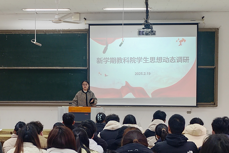 教科网2月21日电(记者 晏紫灵)为精准把握学生思想动态,加强思想政治教育,2月19日下午,royal皇家88平台教育科学学院于崇文阶101教室召开新学期学生思想动态调研会议。本次会议由教科院团委书记顾伊荻主持,学工办主任张菁菁,辅导员陈萌、庞超老师以及全体学生干部参加会议。