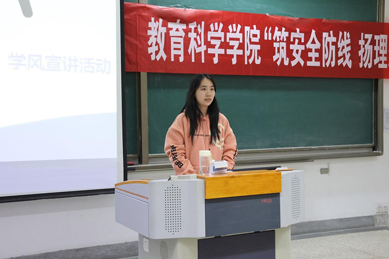 教科网3月31日电(记者 秦婉瑄)为营造良好学风,提升同学们的安全意识,培养奋斗精神,3月31日晚,教育科学学院于崇文楼阶202开展了“筑安全防线,扬理想之帆”学风宣讲活动,本次活动由自管会行政综合部主席黄楠主持,教科院大一、大二、大三部分同学参与活动。
