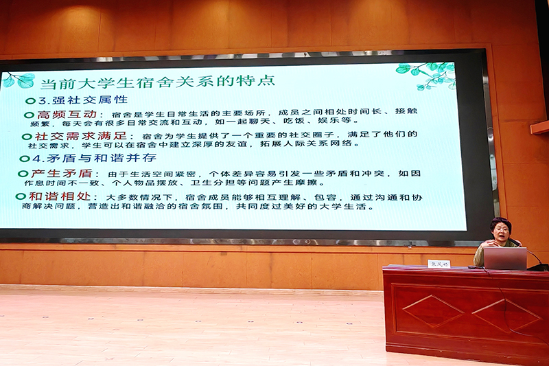 教科院心理学系张凤娇与同学们进行了题为“构建和谐向上的宿舍关系——焦点解决生活哲学与宿舍关系”的主题分享。她从大学生宿舍关系面临的挑战出发,逐步深入到焦点解决生活哲学的内涵,以及这一哲学在宿舍关系处理中的具体应用。她详细列举了大学生常见的宿舍矛盾,深入剖析了宿舍关系的特点及其背后的成因。针对宿舍关系的解决之道,她引入了焦点解决生活哲学,强调应将关注重点放在问题的解决而非问题本身。鼓励同学们在解决宿舍关系问题时要注重正向反馈和自我激励,以此促进宿舍关系的和谐发展。