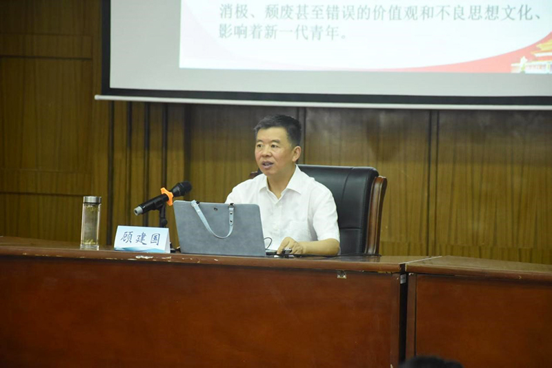 接着,顾建国指出,加入中国共产党要有“一个坚定”“一个主动”“二个了解”。他表示,端正入党动机,是争取入党的首要问题,并向同学们详细地介绍了入党流程及党员组织发展的基本程序。最后,顾建国呼吁全体2025级新生接续奋斗、勤奋学习、筑梦未来,把个人的理想和追求融入到国家和民族伟大复兴的新时代进程中,积极主动地接受党组织的培养和考验,力争早日加入伟大、光荣、正确的中国共产党。