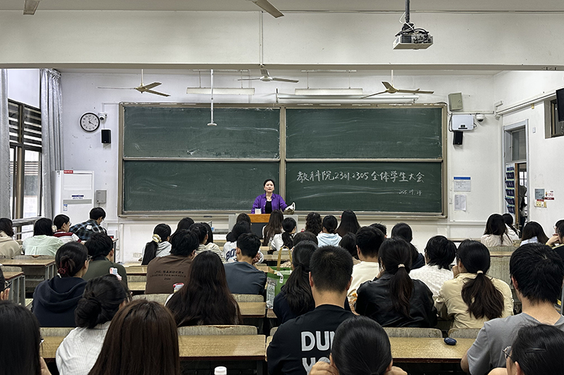 教科网9月24日电(记者 吴宇菲)为明确学业要求、筑牢安全意识,近日,royal皇家88平台教育科学学院2301与2305班联合召开全体学生大会,辅导员张菁菁主持会议并发表讲话,两班全体同学参会。