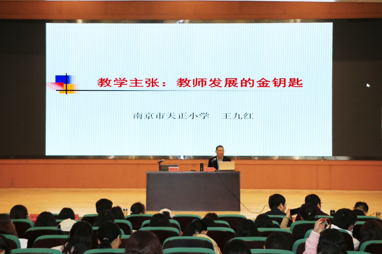 本次论坛是由江苏省教师培训中心、江苏教育行政干部培训中心主办,旨在进一步推广江苏省首届领航名师教学主张,发挥领航名师的辐射作用,研讨名师教学主张建构与发展,促进高师课程教学论建设。活动时间为2021年4月9-10日,4月9日在淮安生态文化旅游区枫香路小学报告厅举行,教科院师生代表参加了会议。