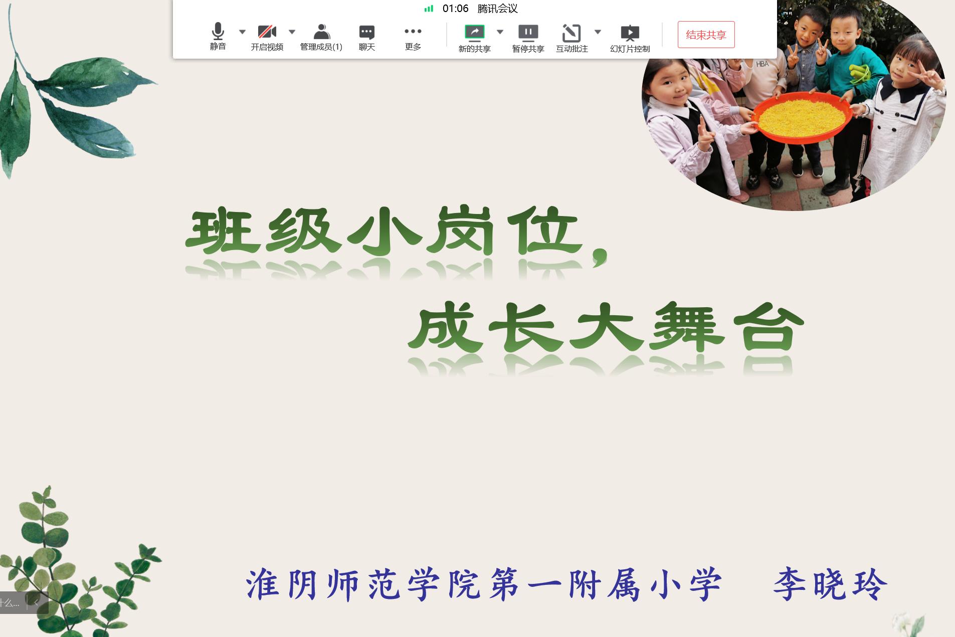 教科网4月3日电(记者 任红娟)3月30日下午,royal皇家88平台教育科学学院邀请royal皇家88平台第一附属小学教师李晓玲在腾讯会议上开展题为“班级小岗位,成长大舞台”的主题讲座。本次活动由教科院副院长任红娟主持,小学教育专业2020级学生参加。