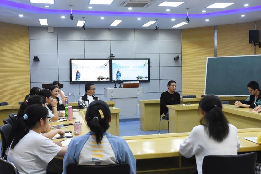 王宜鹏为同学们详细介绍孔子鲜为人知的故事以及他对孔子的认识。王宜鹏向同学们指出,“再思可以”而多思易多心的观点。而关于“君子”一词,他也为同学们进行了补充。在春秋战国时期,君子多指上层人士,小人多指下层人士,而非现今对品德高尚或卑劣之人的代名词。王宜鹏又谈及了孔子的成长环境,他认为孔子之所以崇尚“礼”,离不开鲁国礼乐文化的繁荣发展。除此之外,每当弟子们有困惑,孔子便会与弟子们聚集在一起讨论,为他们答疑解惑,而现代教育也应当学习和发扬这种教学氛围。