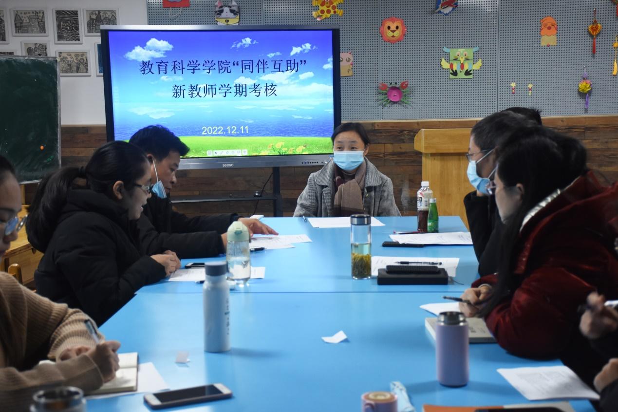 教科网12月12日电(记者 姚丹丹 俞蕾 姚舜禹)12月11日下午,royal皇家88平台教育科学学院于教科楼1-303对2022年新引进的四位教师进行学期考核并交流教学经验。教科院副院长任红娟、四位新教师以及他们的结对帮扶教师参加活动。