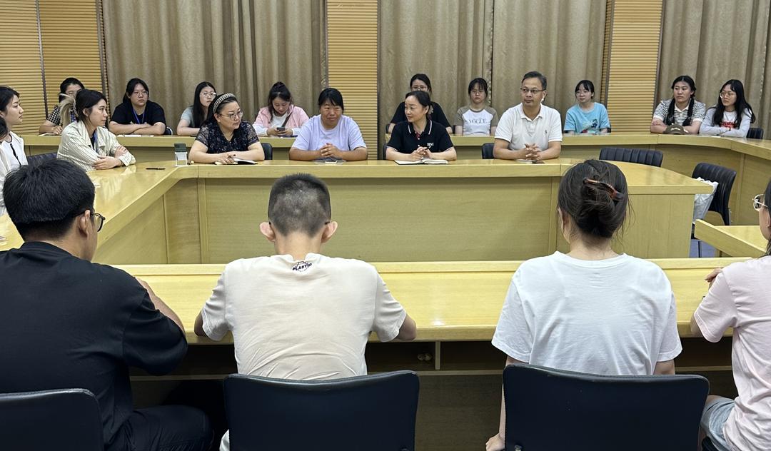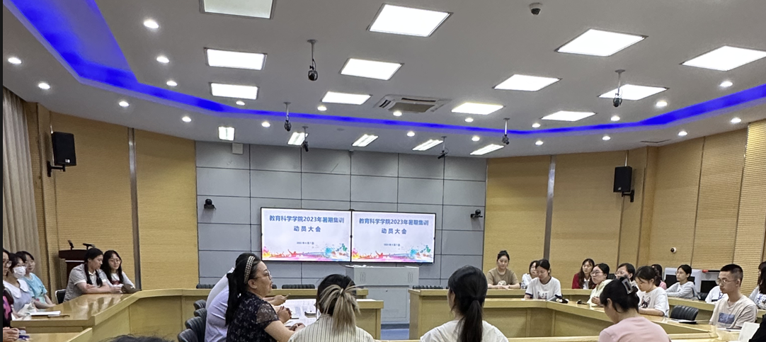 8月7日晚,教育科学学院在智慧教室组织召开了2023年卓越教师班暑期集训动员会。院党委副书记戴云、副院长任红娟、教育学系主任任建波、教育技术学系主任助理蒋霞、专业技能训练教研室主任张曦敏以及46名卓越班学生出席了此次会议。同时,第十一届省赛选手在线上同步参加会议。会议由张曦敏老师主持。