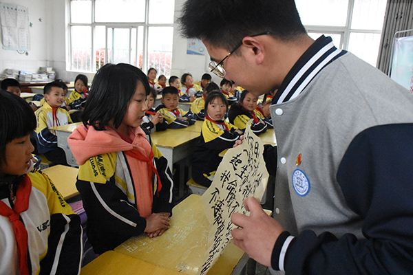 来自于小学教育、学前教育、应用心理、教育技术专业的40余名“准教师”们充分发挥专业特长,深入到小学课堂开展了“大手拉小手,沿着周爷爷的足迹前进”主题活动,为200余名乡村留守儿童带了丰富、有趣的课堂教学。志愿者以《从此励志为中华》等小故事带领着小学生们了解了一位“为中华之崛起而读书”的有志少年,生动的故事,感人的情节,深深感染了在座的小学生们。学前专业大学生与孩子们大手拉小手用五颜六色的彩纸折起了一朵朵漂亮的海棠花,在活动中寄托了对周爷爷的深深怀念。心理学专业的大学生们在前期充分调研留守儿童心理发展状况的基础上,与留守儿童开展了解手链等心理团队活动,寓教于乐,灿烂的笑容在留守儿童的脸上悄然绽放。分别之时,六年级的许双圆同学拉着大哥哥的手说:“大哥哥、大姐姐你们能经常来陪我们吗?希望能和你们成为知心好朋友,给我们带来快乐与知识。我也要向周爷爷那样,团结他人、刻苦学习,努力成为一名对国家有用的人”。