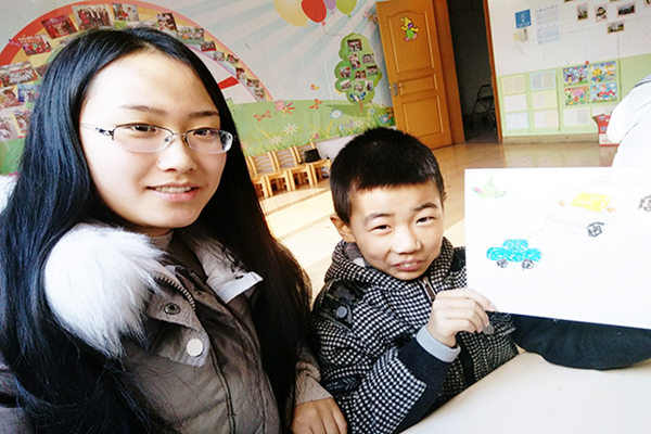 图为教科志愿者在常熟市福利院看望特殊儿童。记者 周颖颉 摄