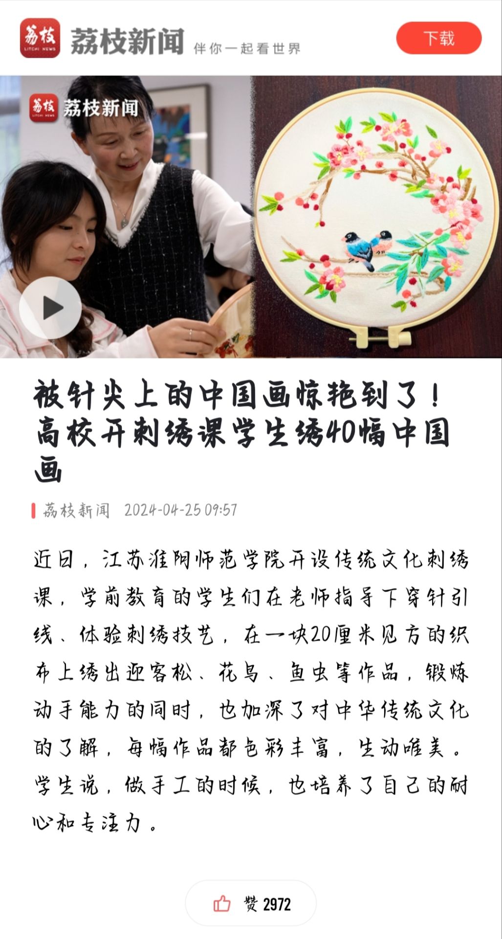 【荔枝新闻】被针尖上的中国画惊艳到了!高校开刺绣课学生绣40幅中国画