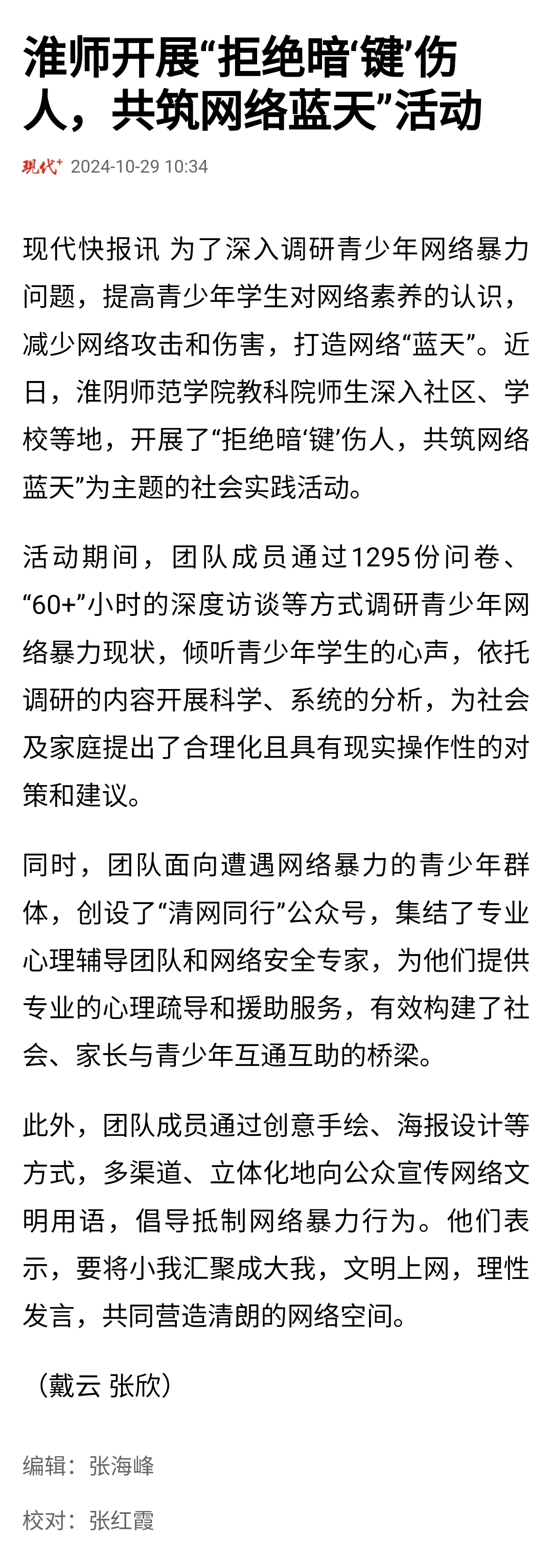 刊播媒体:现代快报 刊播时间:10月29日 通讯员:戴云 张欣