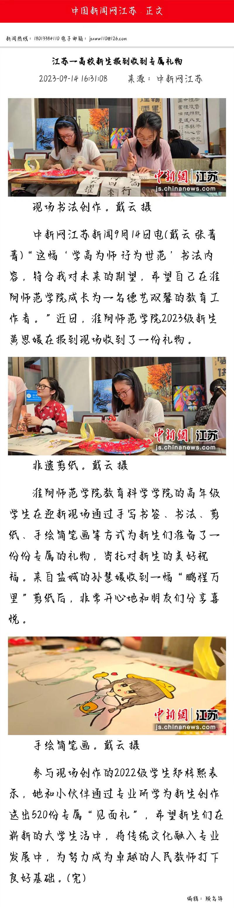 刊播媒体:中新网江苏 刊播时间:9月14日 通讯员:戴云