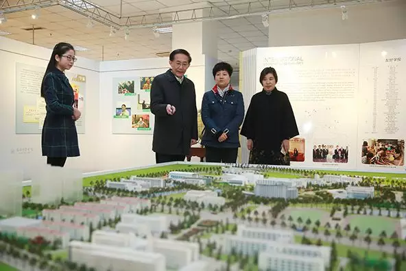 (图为黄馨漪在校史馆为蔡市长讲解)