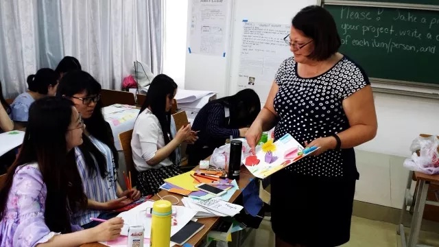 (第一批外国老师来淮授课)